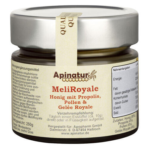Diese besondere Honigspezialität vereint aromatischen Waldhonig mit ausgewählten weiteren Bienenprodukten. Dem Honig sind jeweils 4 % Propolis, 4 % Gelée Royale und 4 % Blütenpollen zugesetzt – für eine außergewöhnliche Kombination aus Geschmack und natürlicher Vielfalt.
